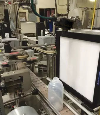 西安海克易邦光電使用尺寸為24英寸×24英寸的大光板(LLP)白色平板照明光源,為沿著生產(chǎn)線移動(dòng)的蜂蜜瓶提供背光照明。使用高像素工業(yè)相機(jī),捕獲瓶身上螺紋的圖像。