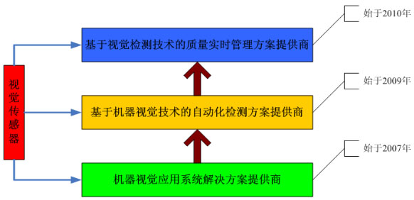 三、機(jī)器視覺(jué)應(yīng)用 機(jī)器視覺(jué)系統(tǒng)是實(shí)現(xiàn)儀器設(shè)備精密控制、智能化、自動(dòng)化有有效途徑,堪稱現(xiàn)代工業(yè)生產(chǎn)的“機(jī)器眼睛”。其最大優(yōu)點(diǎn)為: (1)實(shí)現(xiàn)非接觸測(cè)量。對(duì)觀測(cè)與被觀測(cè)者都不會(huì)產(chǎn)生任何損傷,從而提高了系統(tǒng)的可靠性 (2)具有較寬的光譜響應(yīng)范圍。機(jī)器視覺(jué)則可以利用專用的光敏元件,可以觀察到人類無(wú)法看到的世界,從而擴(kuò)展了人類的視覺(jué)范圍。 (3)長(zhǎng)時(shí)間工作。人類難以長(zhǎng)時(shí)間地對(duì)同一對(duì)象進(jìn)行觀察。機(jī)器視覺(jué)系統(tǒng)則可以長(zhǎng)時(shí)間地執(zhí)行觀測(cè)、分析與識(shí)別任務(wù),并可應(yīng)用于惡劣的工作環(huán)境。以下為機(jī)器視覺(jué)系統(tǒng)在不同領(lǐng)域的典型應(yīng)用: 機(jī)器視覺(jué)系統(tǒng)在不同領(lǐng)域的典型應(yīng)用