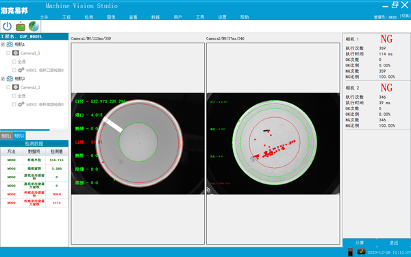 | 1.主要功能:紙杯口部、紙杯底部缺陷檢測(cè)、污漬檢測(cè),檢測(cè)結(jié)果IO信號(hào)輸出。 |